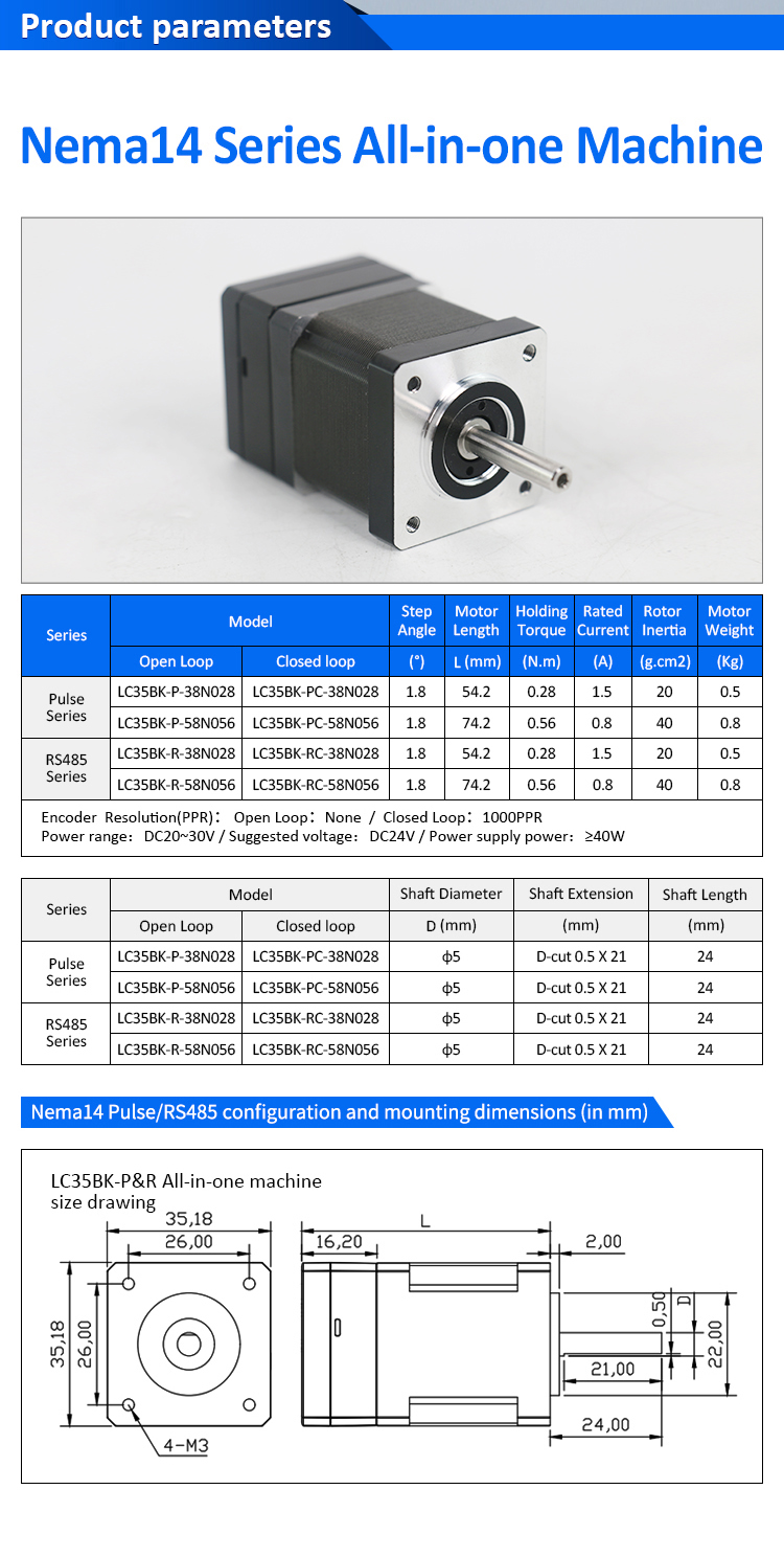 Ang Shenzhen Xinlichuan Electric Co, Ltd ay isang uri ng backpack na NEMA14 Open Loop-closed loop integrated stepper motor na tagagawa at tagapagtustos sa China na maaaring pakyawan na backpack type NEMA14 Open Loop/Sarado na Loop Integrated Stepper Motor. Maaari kaming magbigay ng propesyonal na serbisyo at mas mahusay na presyo para sa iyo. Kung interesado ka sa backpack type NEMA14 Open Loop/Sarado na Mga Produkto ng Stepper Motor, mangyaring makipag -ugnay sa amin. Sinusunod namin ang kalidad ng pahinga na tiniyak na ang presyo ng budhi, nakatuon na serbisyo.