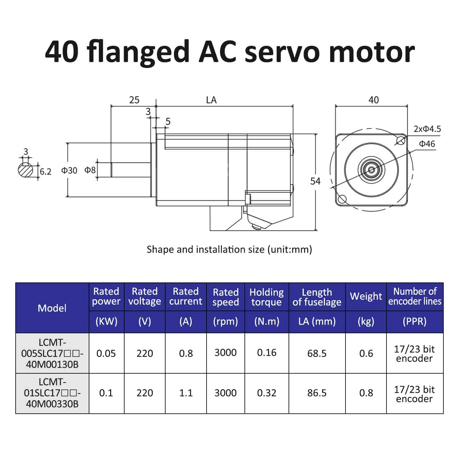 | Motor Moddel | LCMT-005SLC17-40M00130B | LCMT-01SLC17-40M00330B |