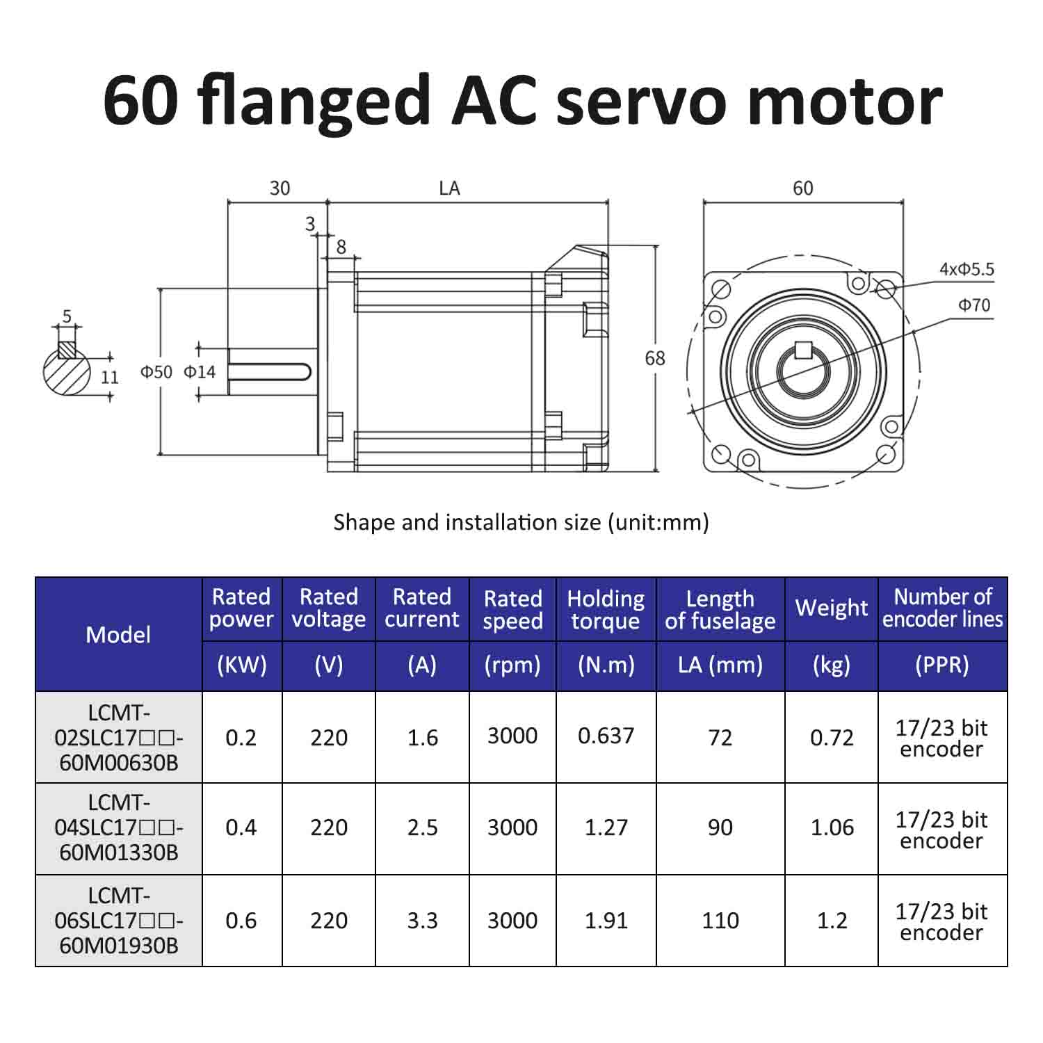 | Motor Moddel | LCMT-02SLC17-60M00630B | LCMT-04SLC17-60M01330B | LCMT-06SLC17-60M01930B |